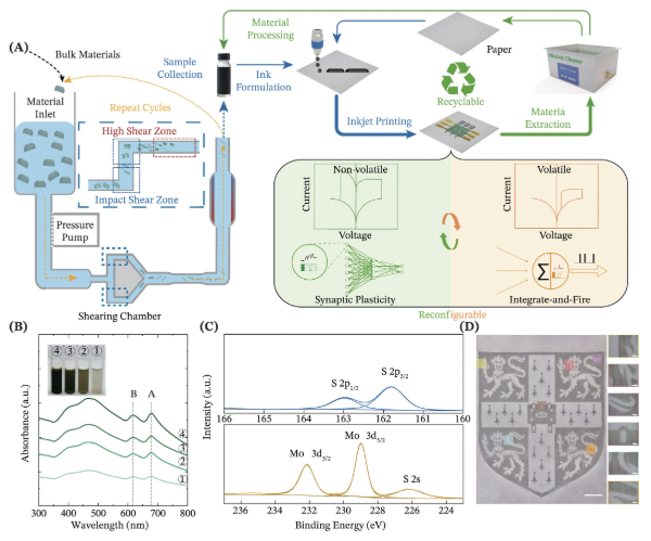 Jinrui's work on sustainable paper-based memristors is published in InfoMat as “Inkjet-printed reconfigurable and recyclable memristors on paper” and is selected as the cover feature!The work demonstrates printed memristors with reconfigurable switching characteristics and recyclability, offering a sustainable pathway toward next-generation neuromorphic electronics.
